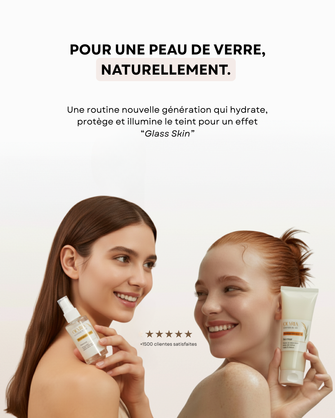 Notre routine Olyria nettoie en douceur, hydrate intensément et réveille l’éclat naturel de la peau.